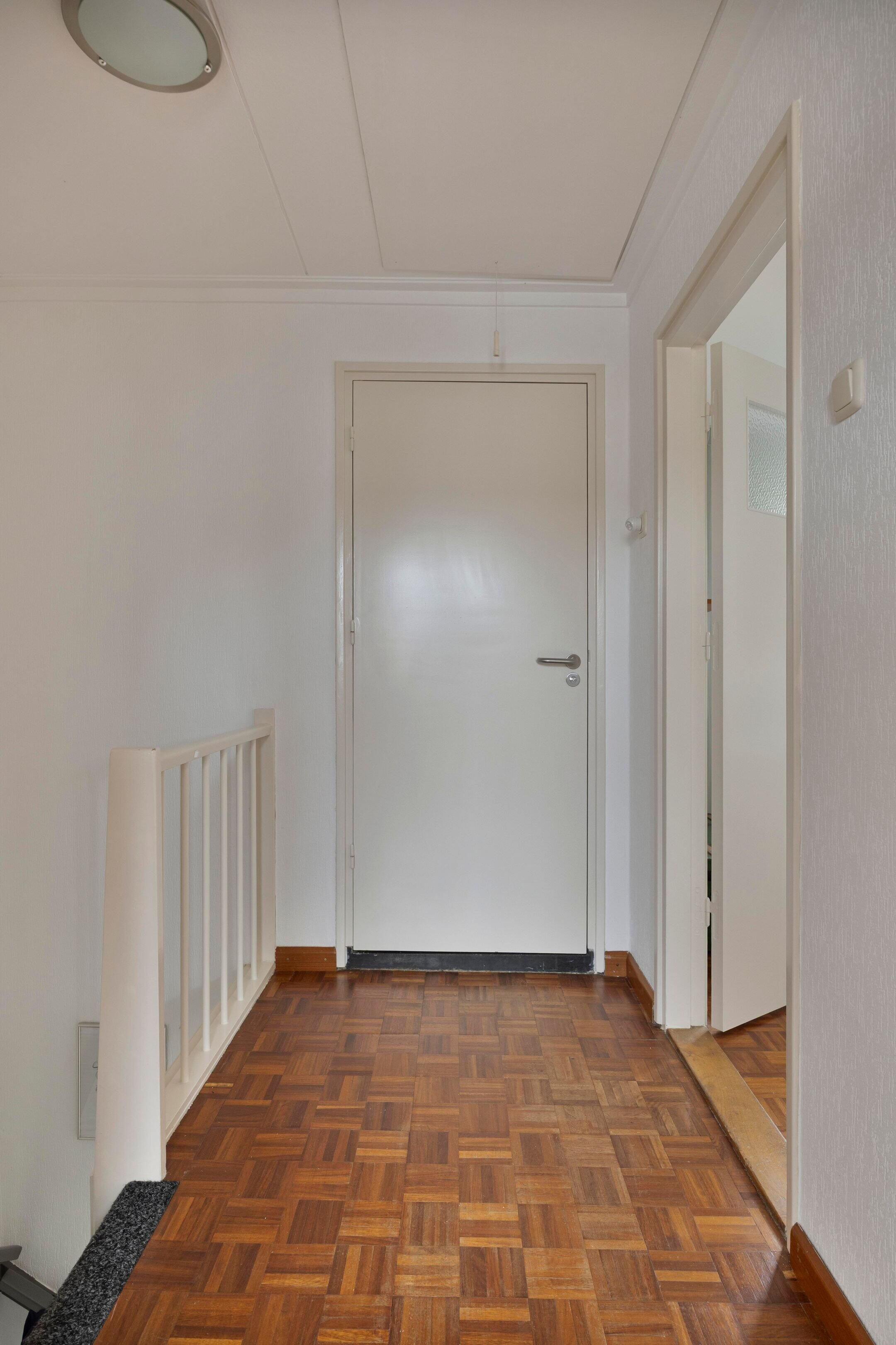 Op de overloop ligt, net als in de slaapkamers, een parketvloer in een blokmotief. Er zijn twee slaapkamers aan de achterzijde, waarvan een in gebruik is als kleedruimte, en de slaapkamer aan de voorzijde is de master bedroom.
